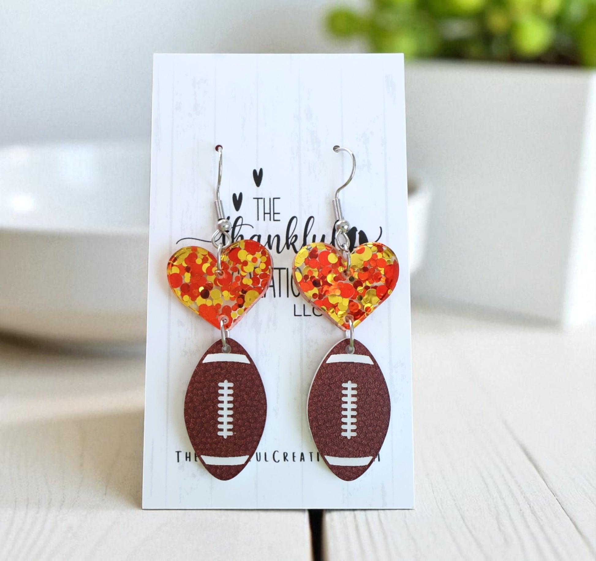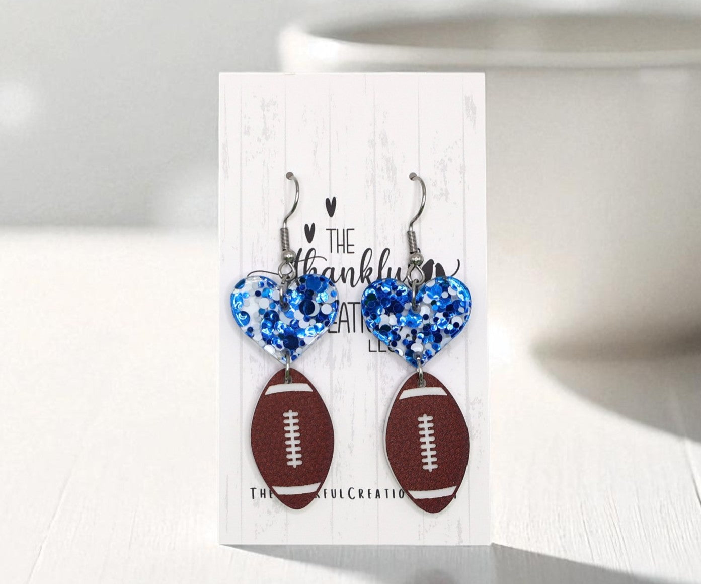 Featuring premium glitter acrylic and paired with a football accent, these lightweight statement pieces are perfect for Game Day, back to school spirit events, and team-themed gifts. They’re an easy, eye-catching way to show your team spirit and love for football all season long.
