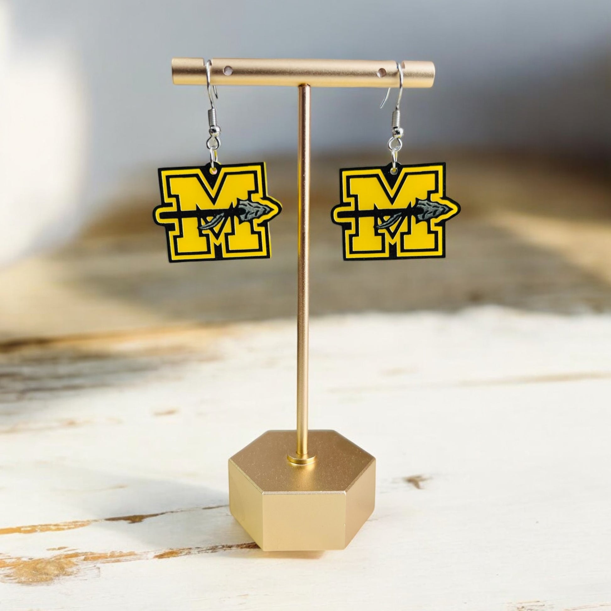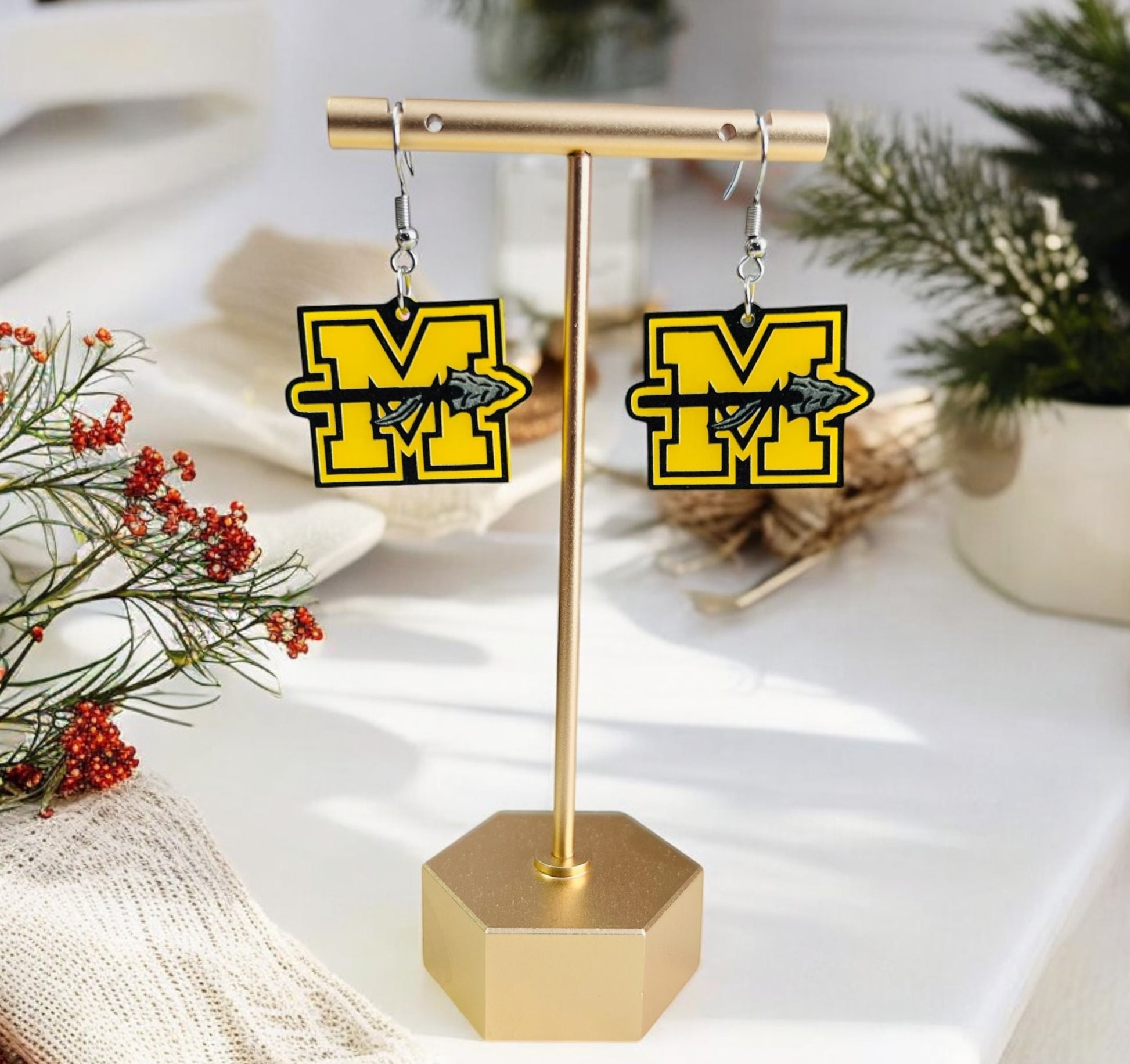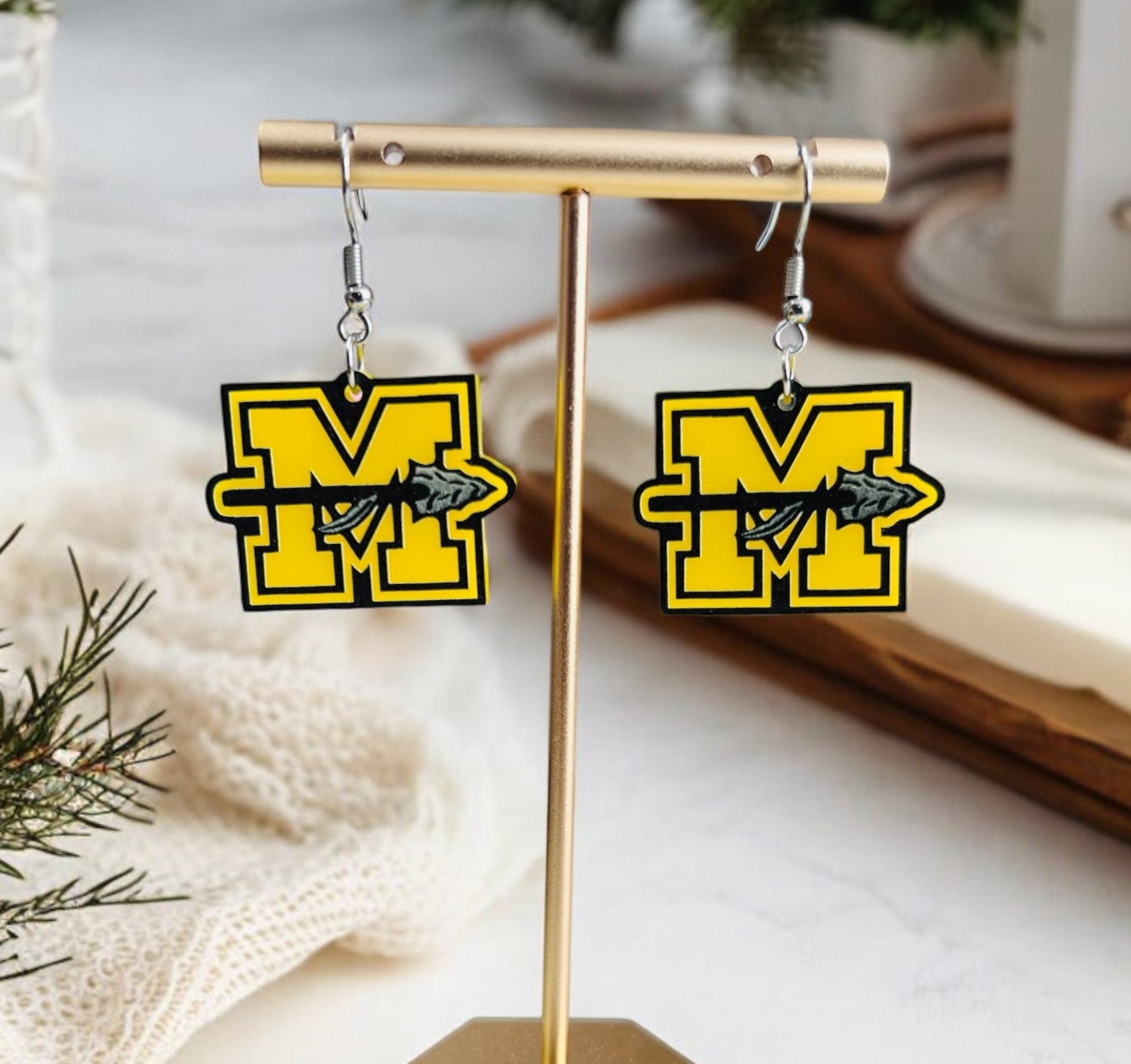 These beautiful school spirit earrings make a statement without saying a word. Handcrafted in Indiana using high quality printed acrylic, they dangle effortlessly from stainless steel hardware. Whether you're a sports enthusiast or simply love making a statement, these earrings are the perfect accessory to elevate your style.